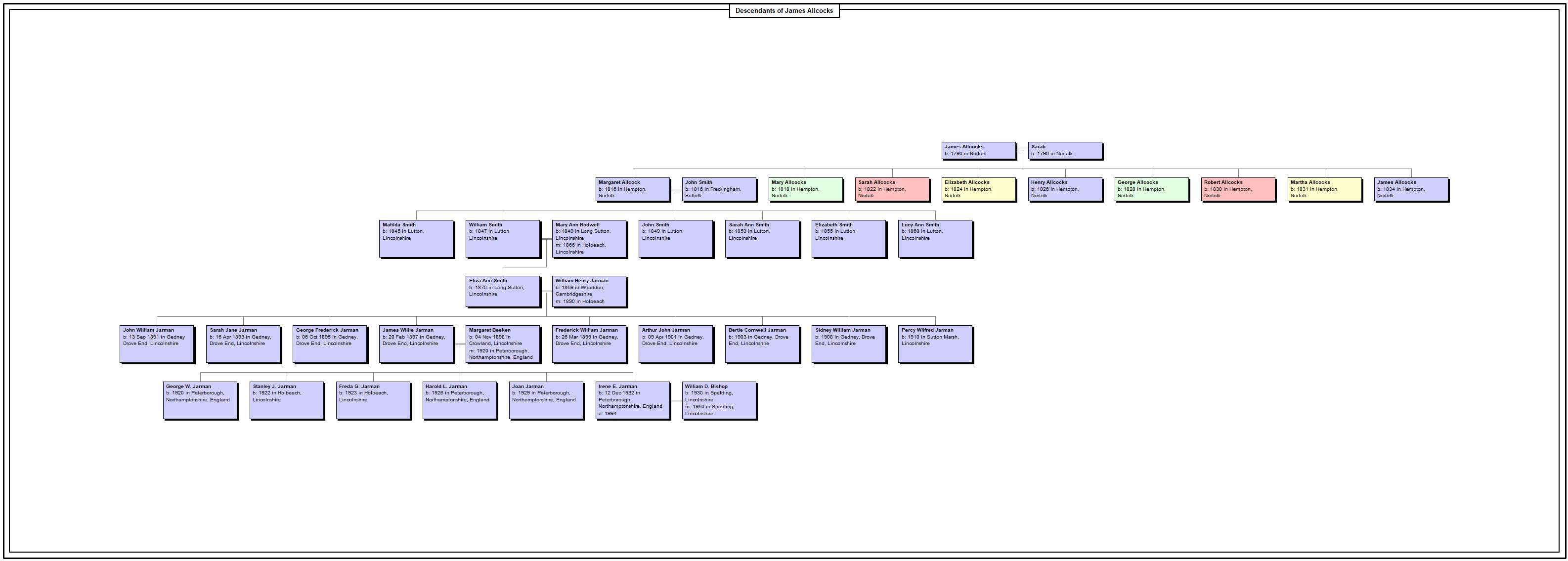 Margaret ALLCOCKS was born in 1816 at Hempton, Norfolk. She was the daughter of James and Sarah ALLCOCKS.