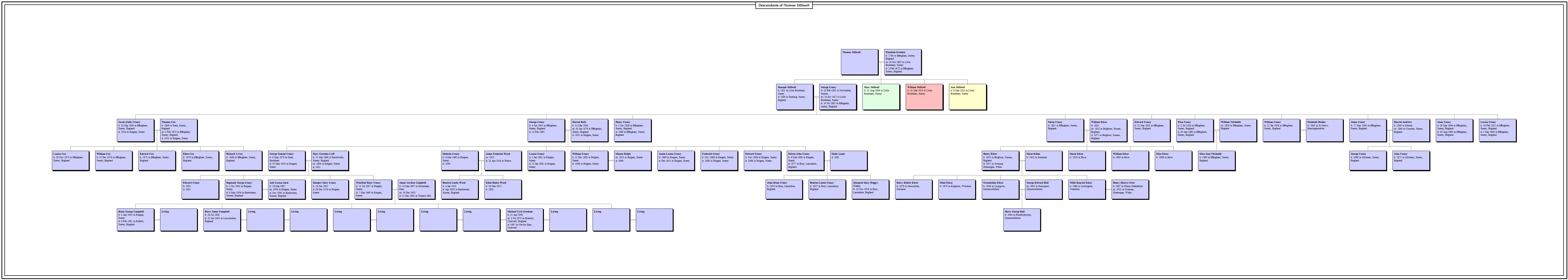 Hannah STILLWELL was born in 1811, at Little Bookham, Surrey. She was the daughter of Thomas STILLWELL and Elizabeth ECCLETON.